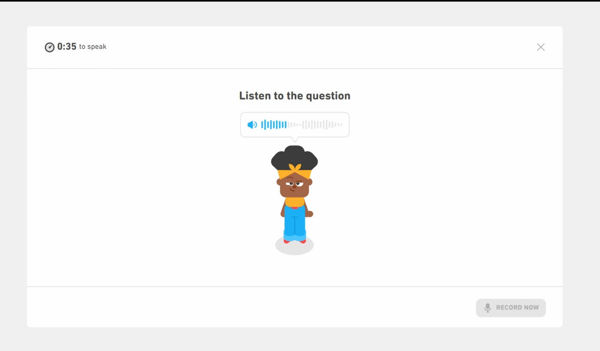 Instead of speaking to a blank screen, you’ll hear a voice from one of Duolingo’s virtual characters like “B” or “Oscar.” You then have up to 35 seconds to respond.