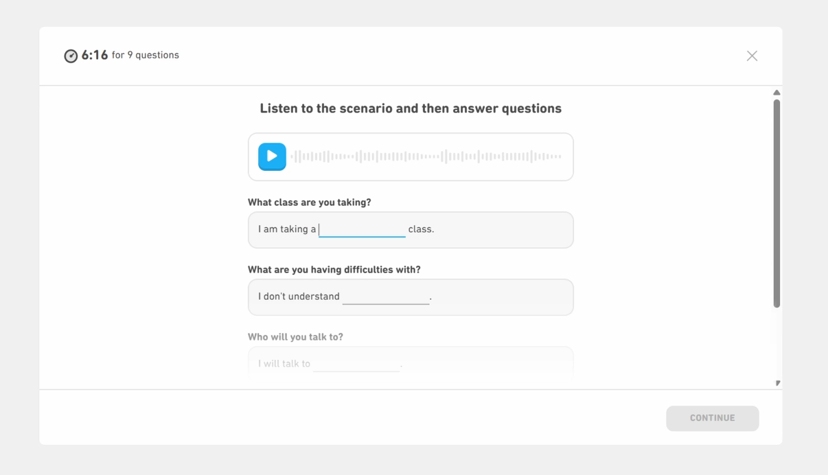 - You’ll hear a question from a Duolingo character (like Bea or Oscar).