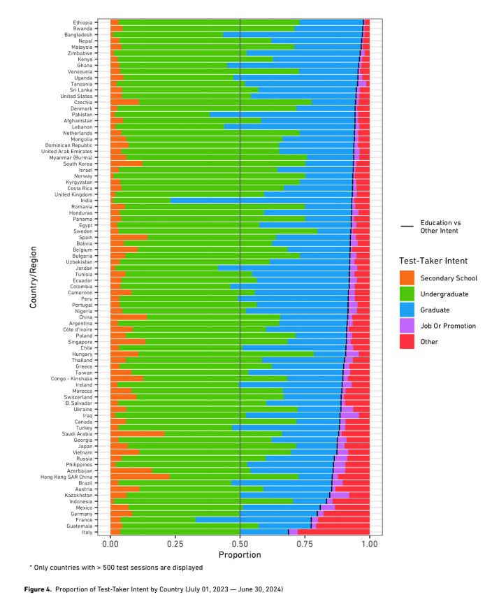 - Asia leads the way, with roughly 6 in 10 test takers coming from the region.